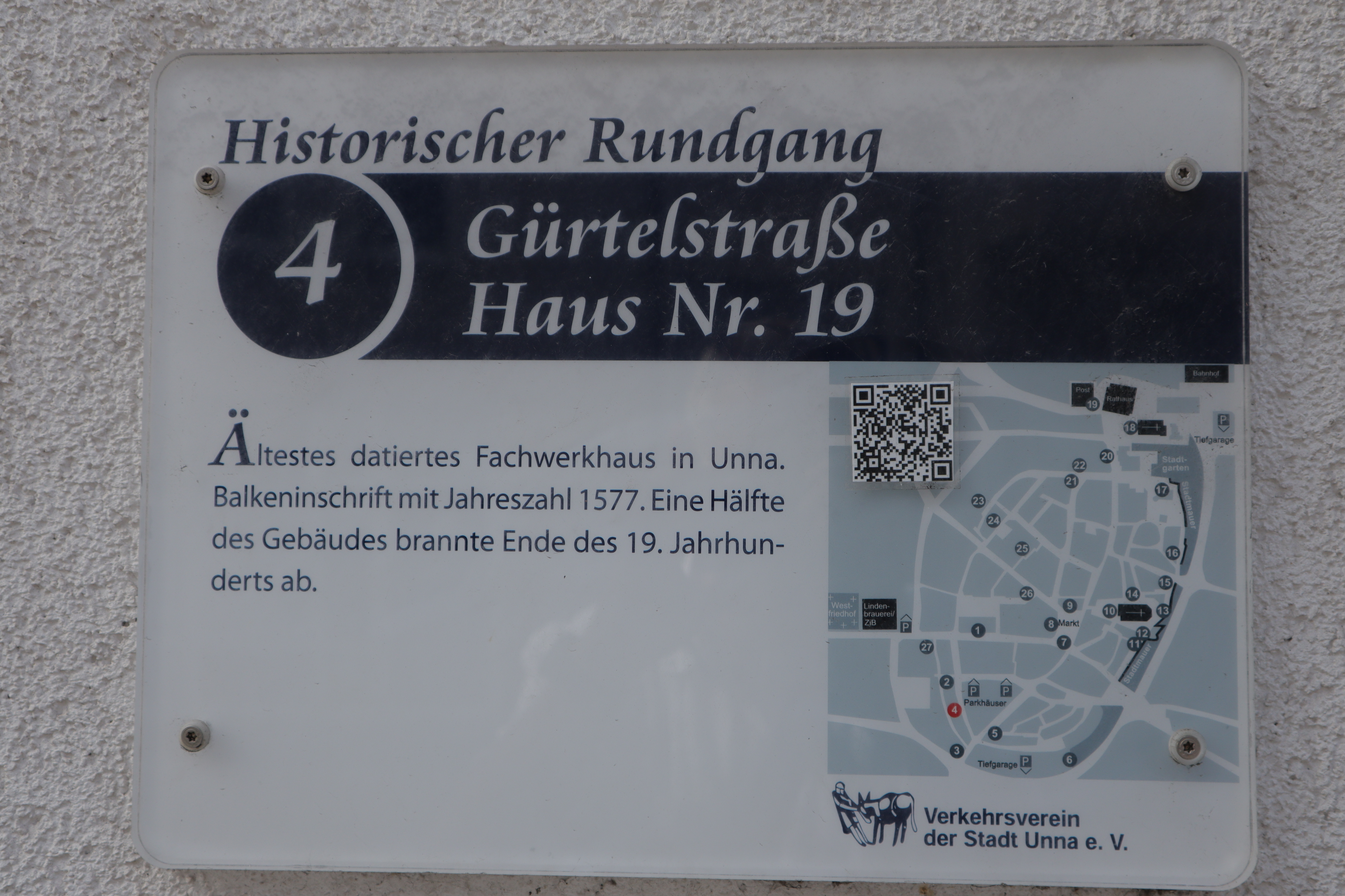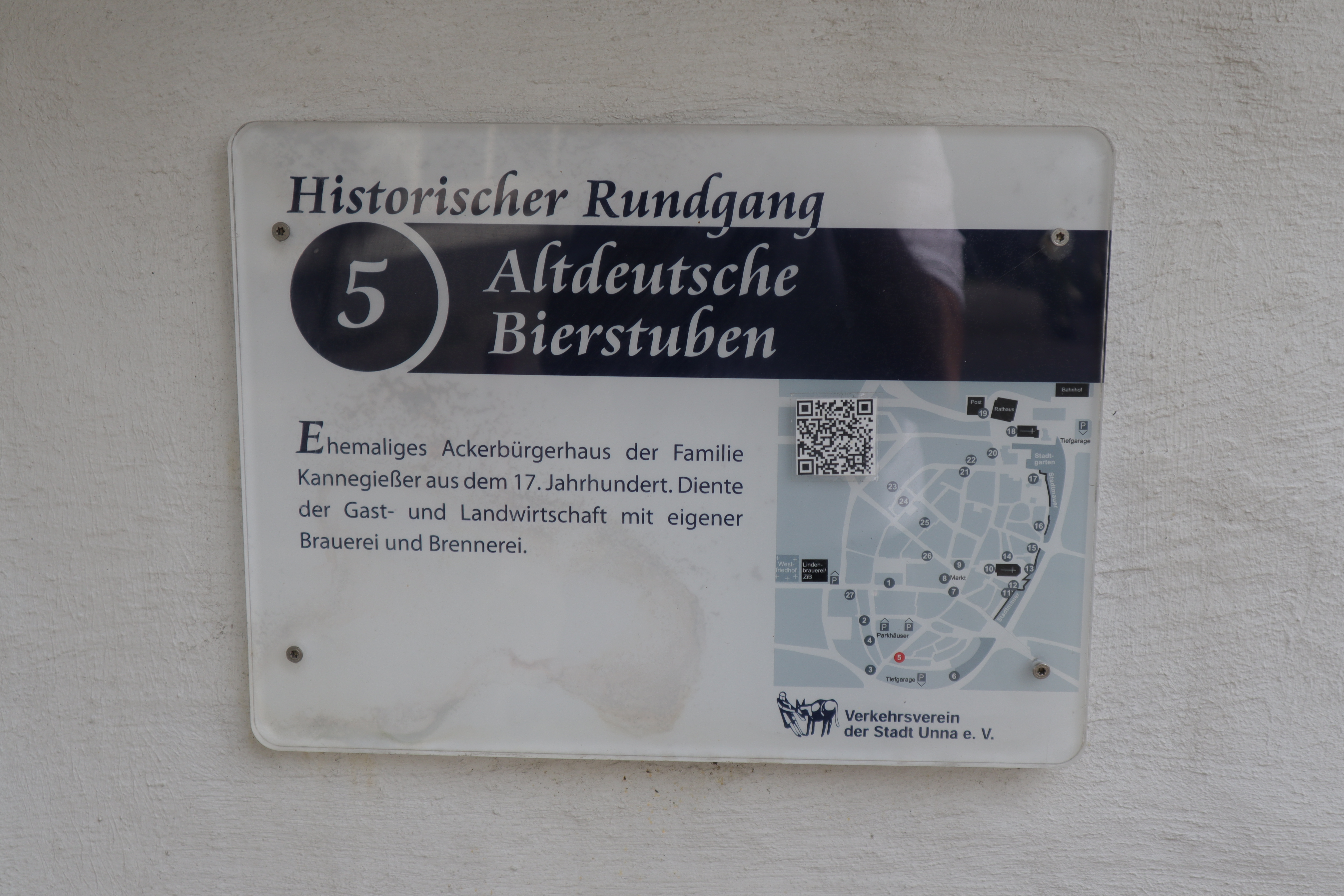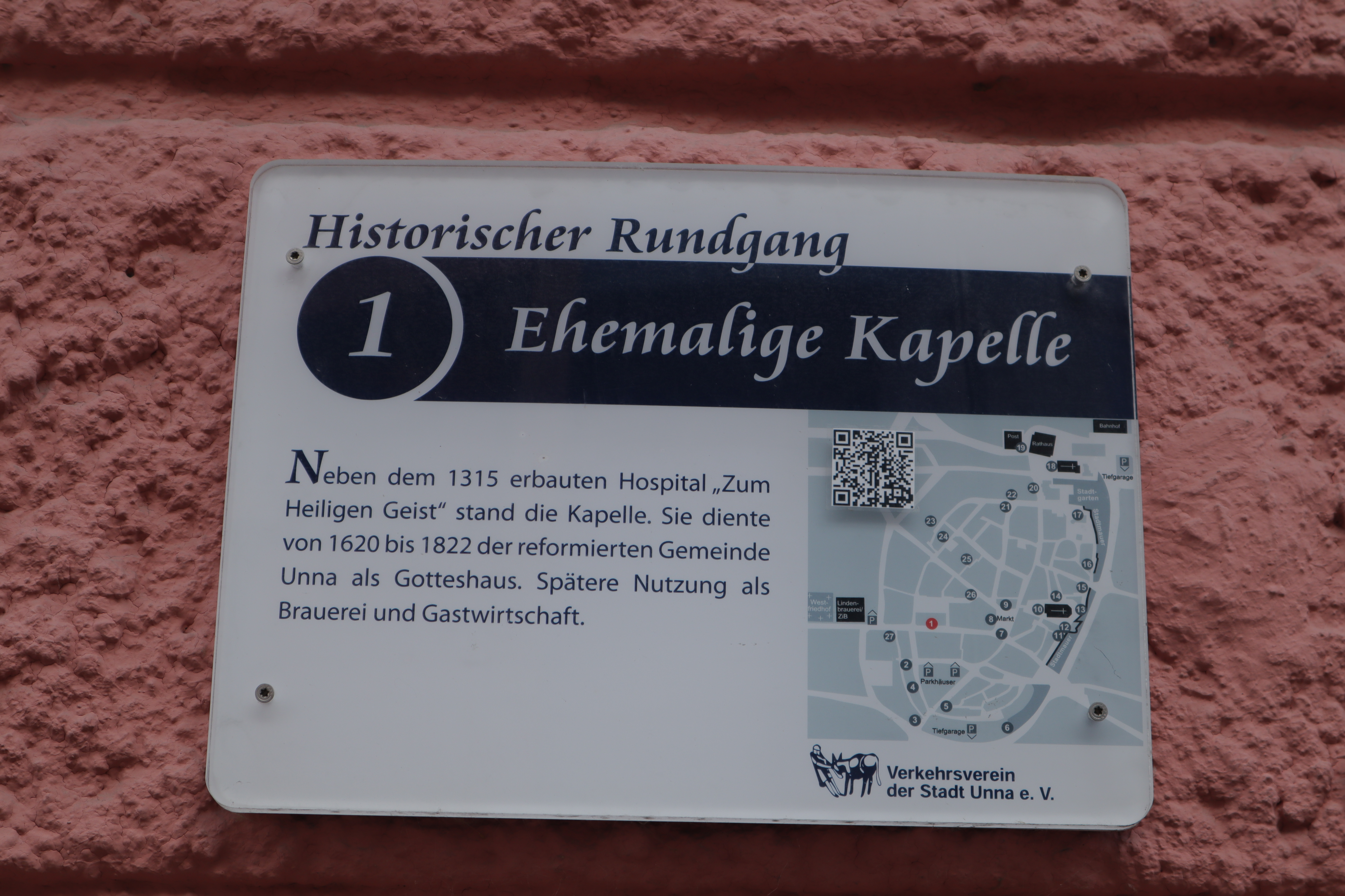 Die Stadt Unna bietet einen historischen Stadtrundgang mit 27 Stationen an. Am Rathaus befindet sich eine Tafel mit der Übersicht über alle Stationen, die einzelnen Stationen sind jeweils mit Schildern gekennzeichnet. Hier eine Übersicht der Stationen.