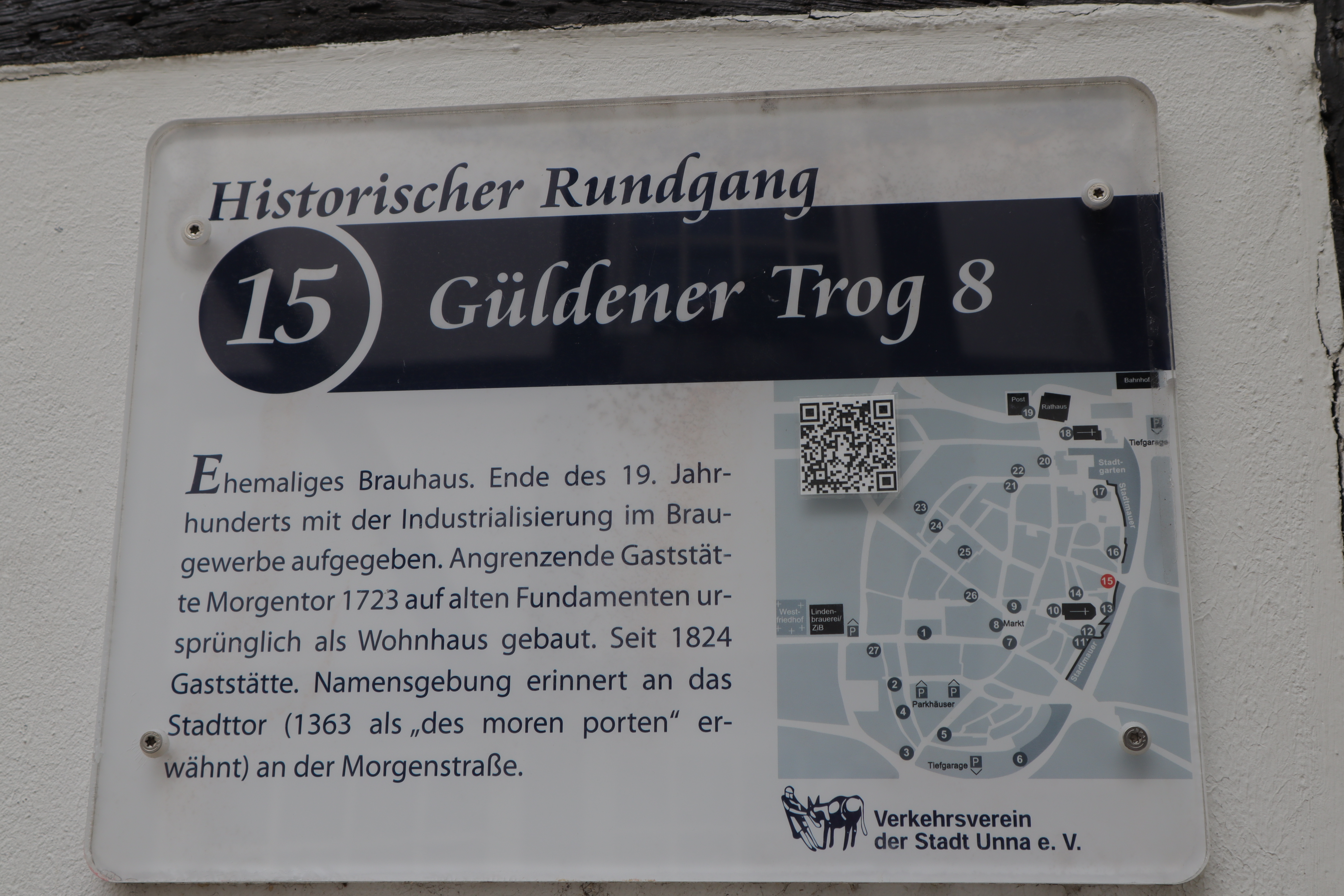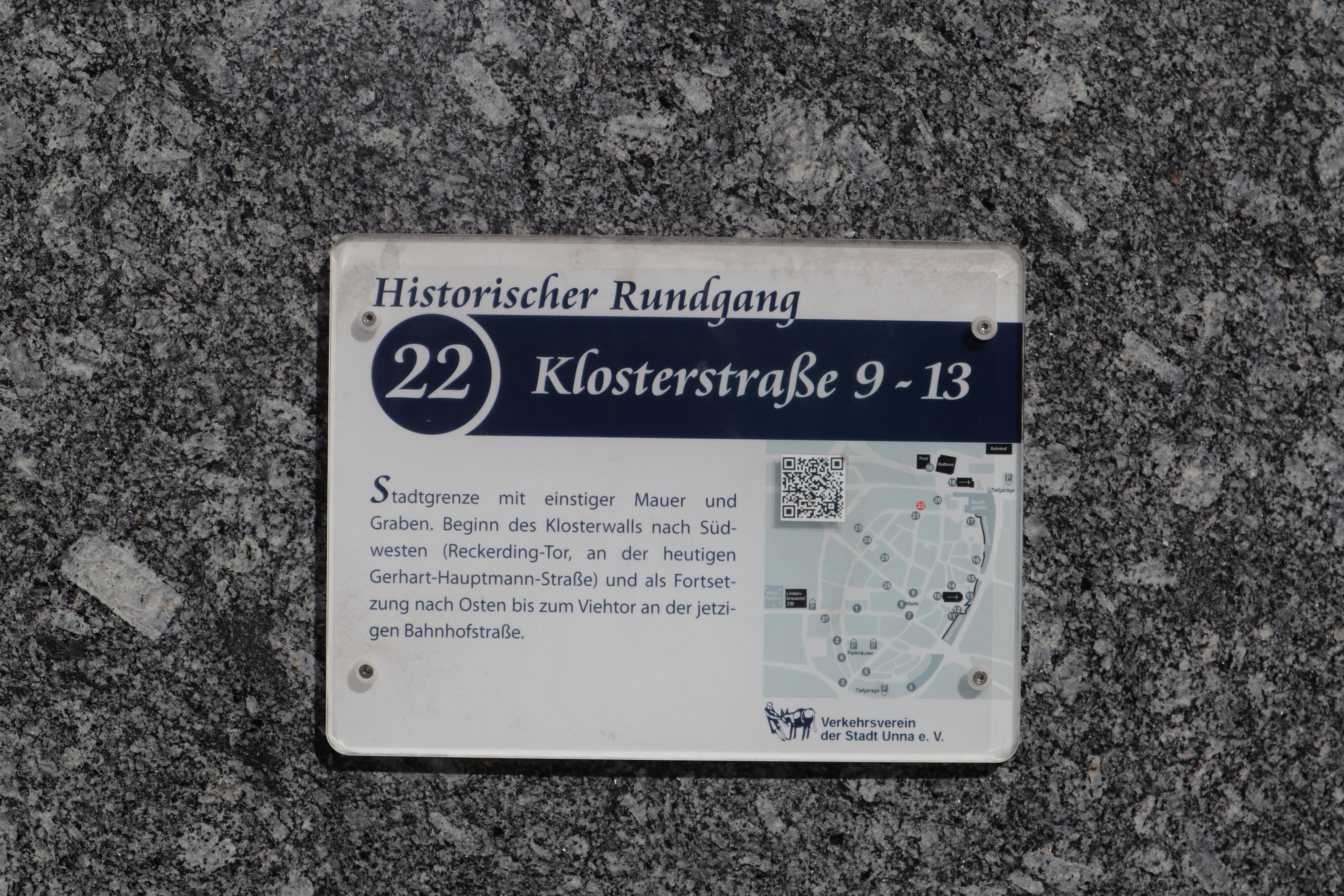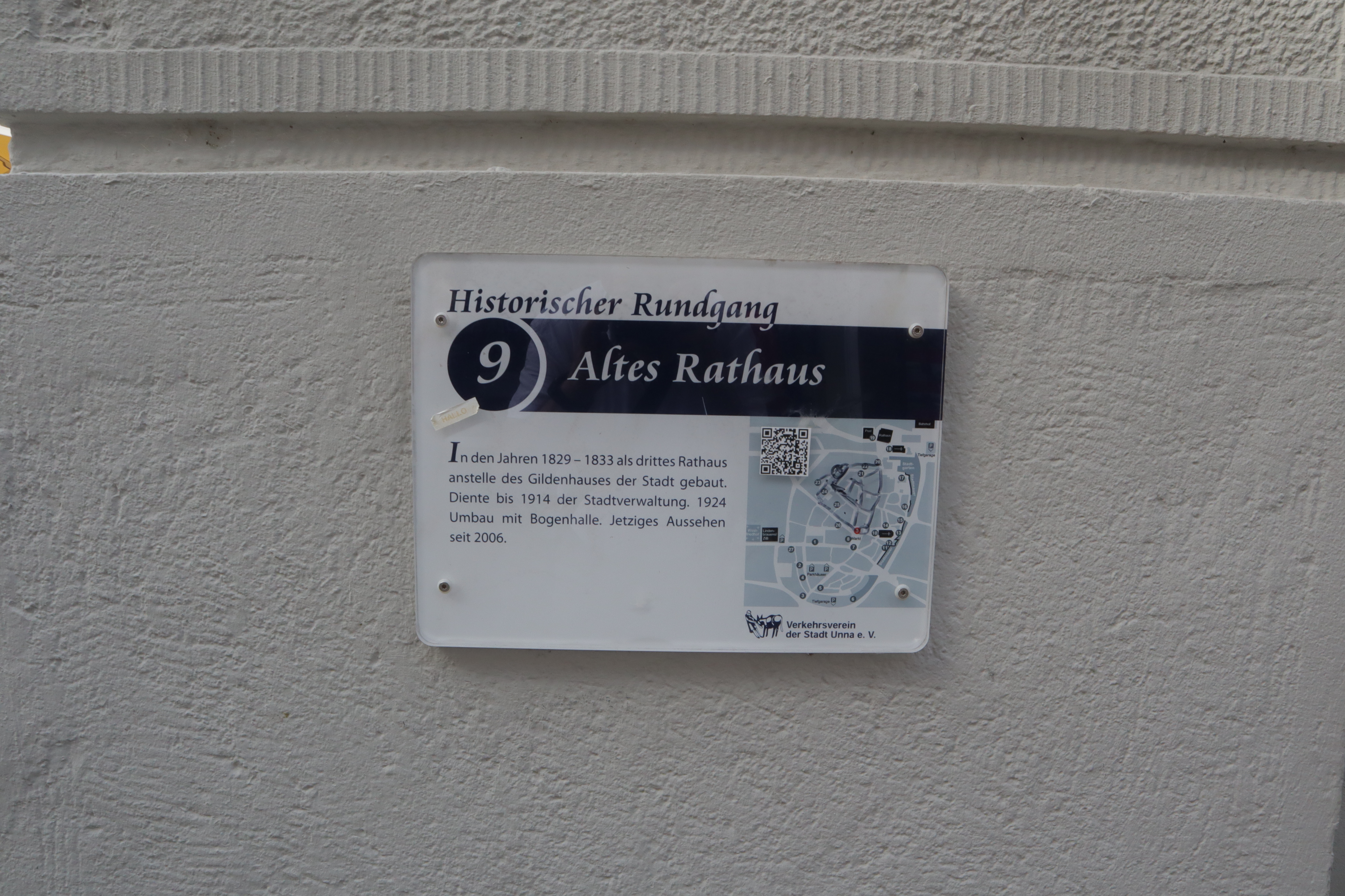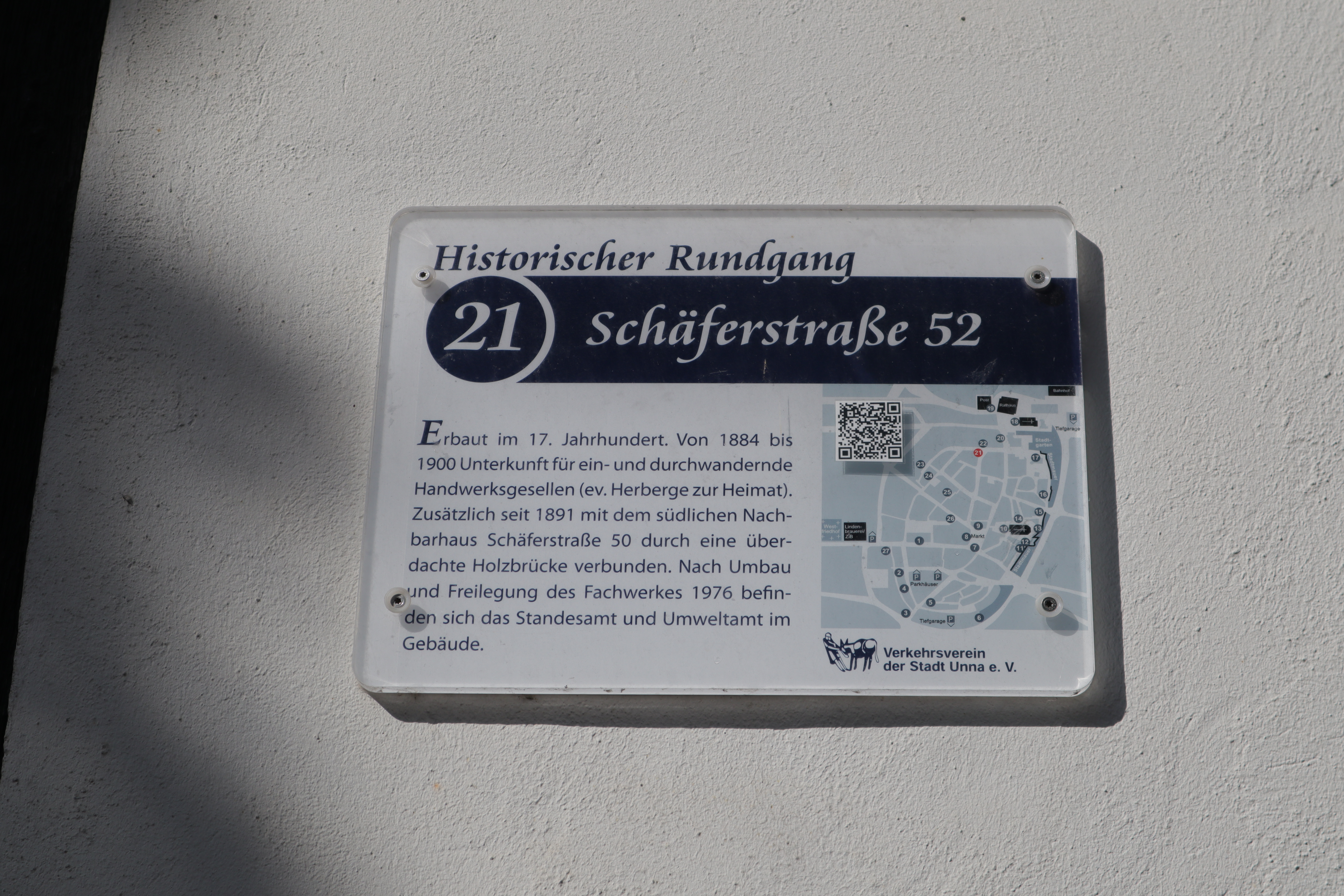 Die Stadt Unna bietet einen historischen Stadtrundgang mit 27 Stationen an. Am Rathaus befindet sich eine Tafel mit der Übersicht über alle Stationen, die einzelnen Stationen sind jeweils mit Schildern gekennzeichnet. Hier eine Übersicht der Stationen.